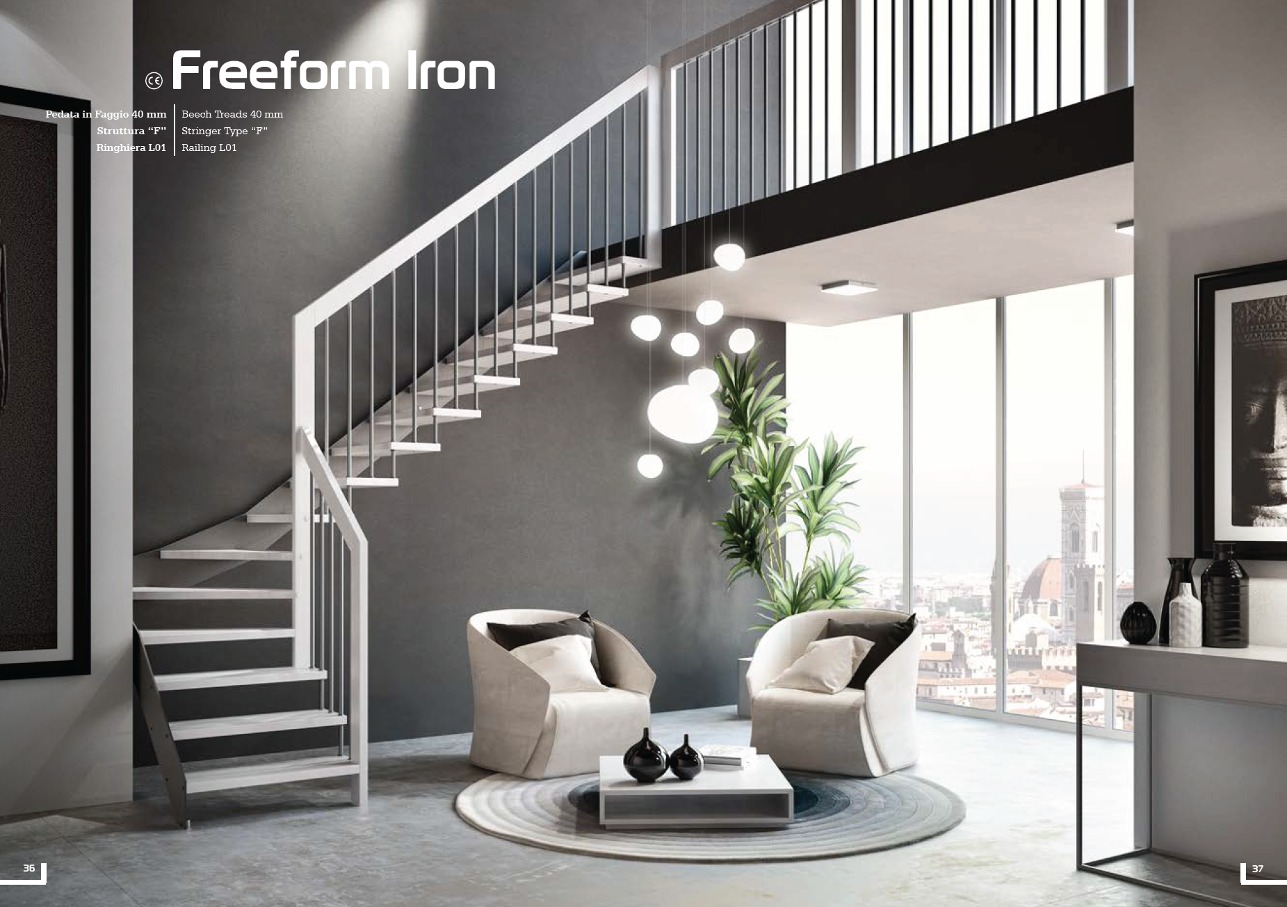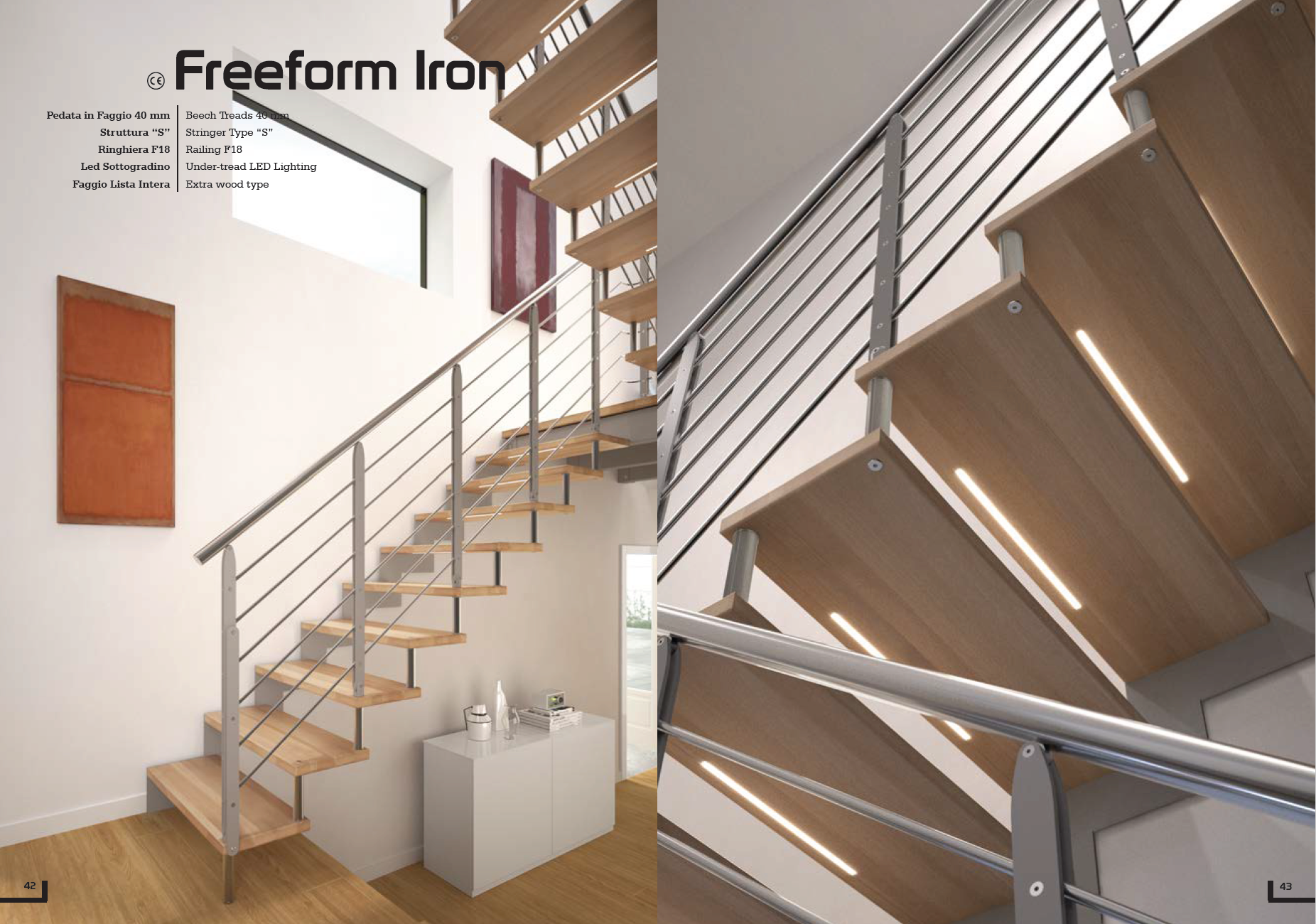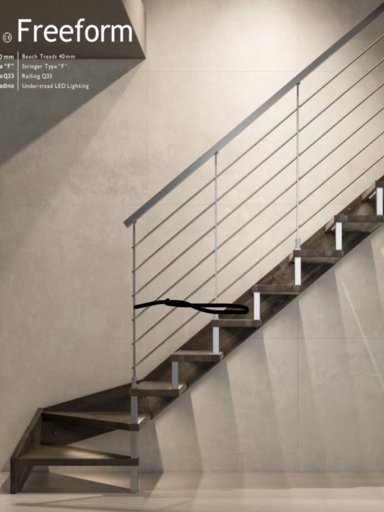 Ls scala a giorno Freeform è offerta con un solo Fascione laterale in Legno – La Scala funziona solo con l’utilizzo della Ringhiera e con un solo Fascione laterale in Metallo – La Scala funziona solo con l’utilizzo della Ringhiera.