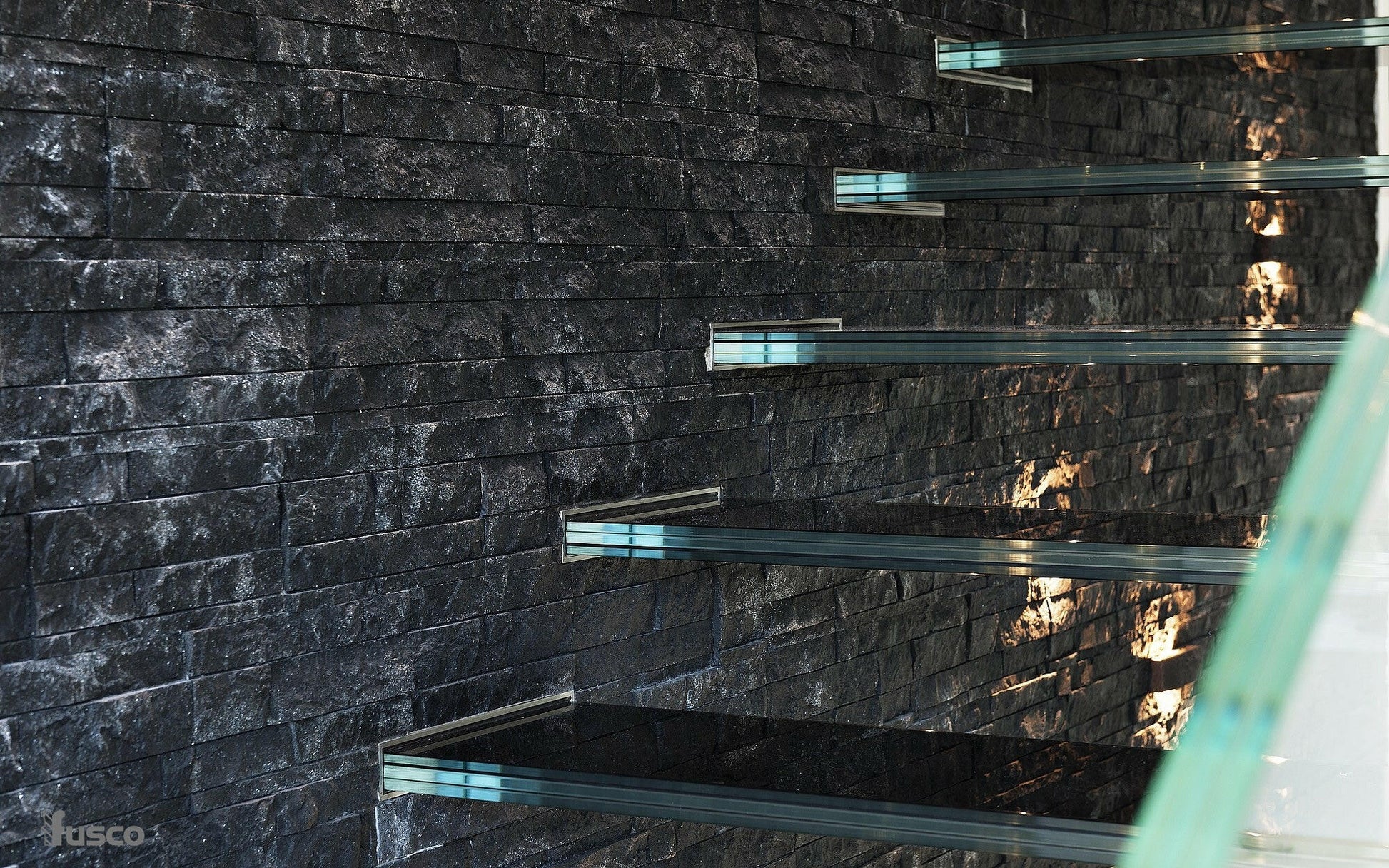 - Struttura portante nascosta all’interno della muratura, realizzata in acciaio ad alta resistenza, progettata per sostenere i gradini e il parapetto senza bisogno di supporti visibili.